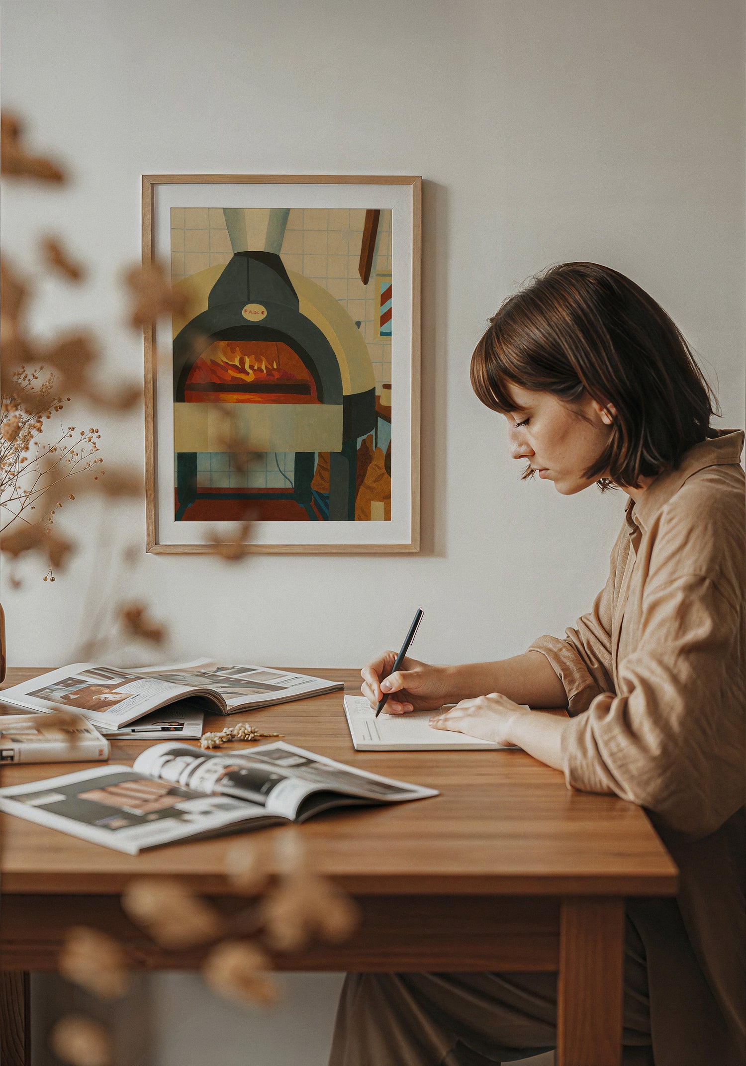Du laddar upp ett foto – det kan vara på en maträtt, ett ögonblick eller något du vill minnas. Vi förvandlar bilden till en unik illustration i den stil du väljer. Innan tryck får du ett korrektur att godkänna. När allt känns rätt trycker vi ditt konstverk och skickar det hem till dig – redo att hängas upp och älskas länge.