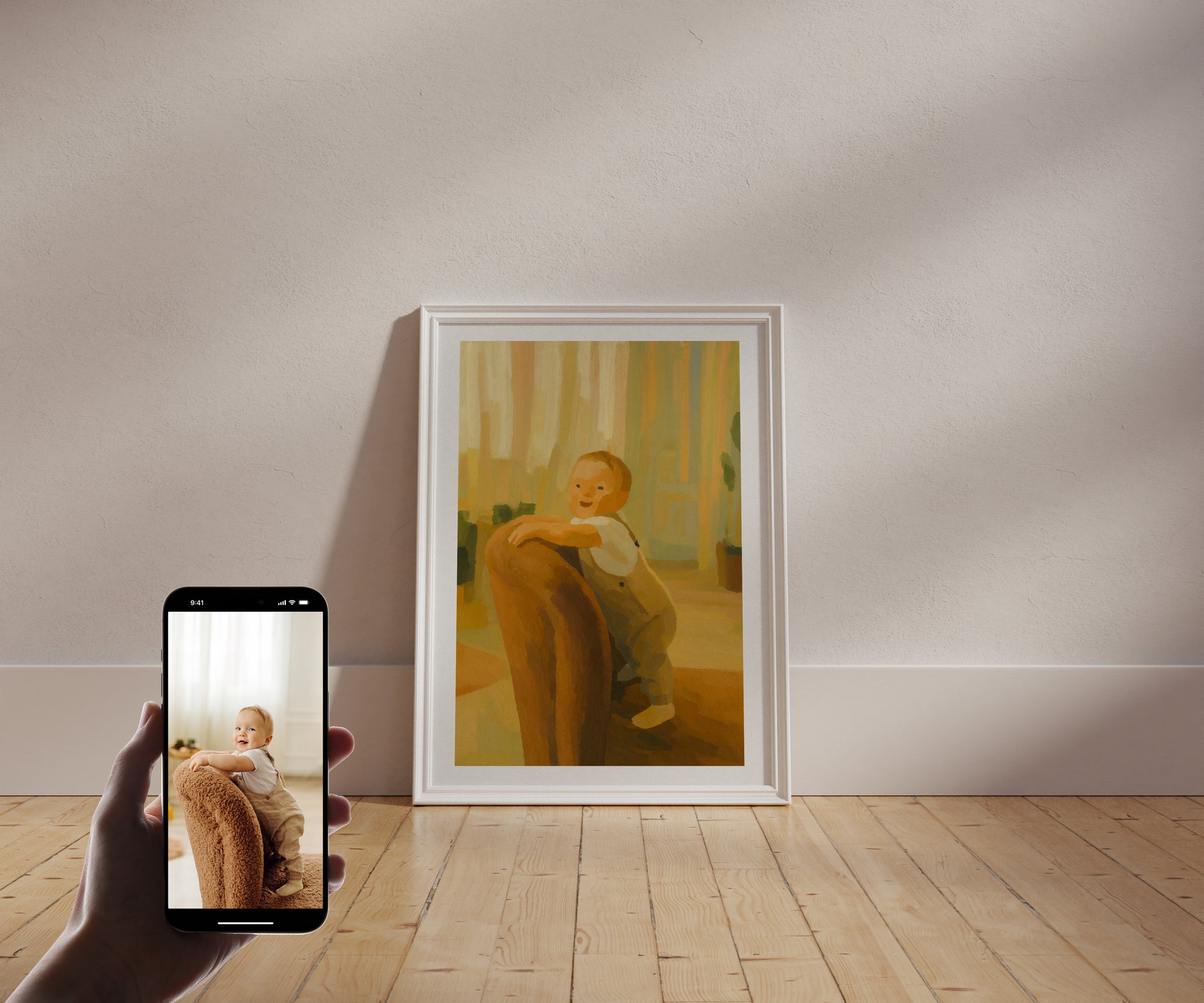 En varm, konstnärlig tolkning av dina foton – inspirerad av klassisk gouachemålning med en modern twist.