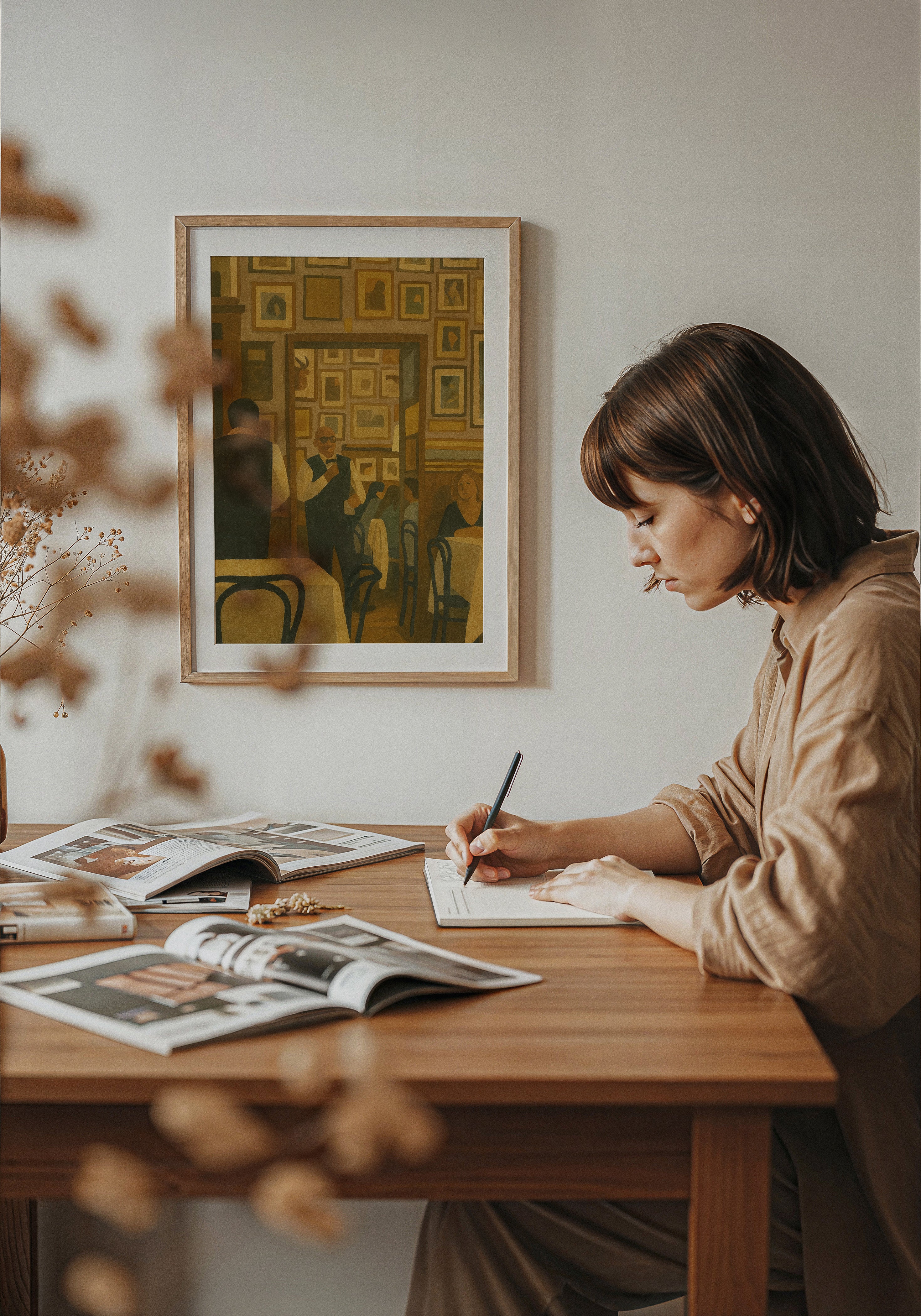 Du laddar upp ett foto – det kan vara på en maträtt, ett ögonblick eller något du vill minnas. Vi förvandlar bilden till en unik illustration i den stil du väljer. Innan tryck får du ett korrektur att godkänna. När allt känns rätt trycker vi ditt konstverk och skickar det hem till dig – redo att hängas upp och älskas länge.